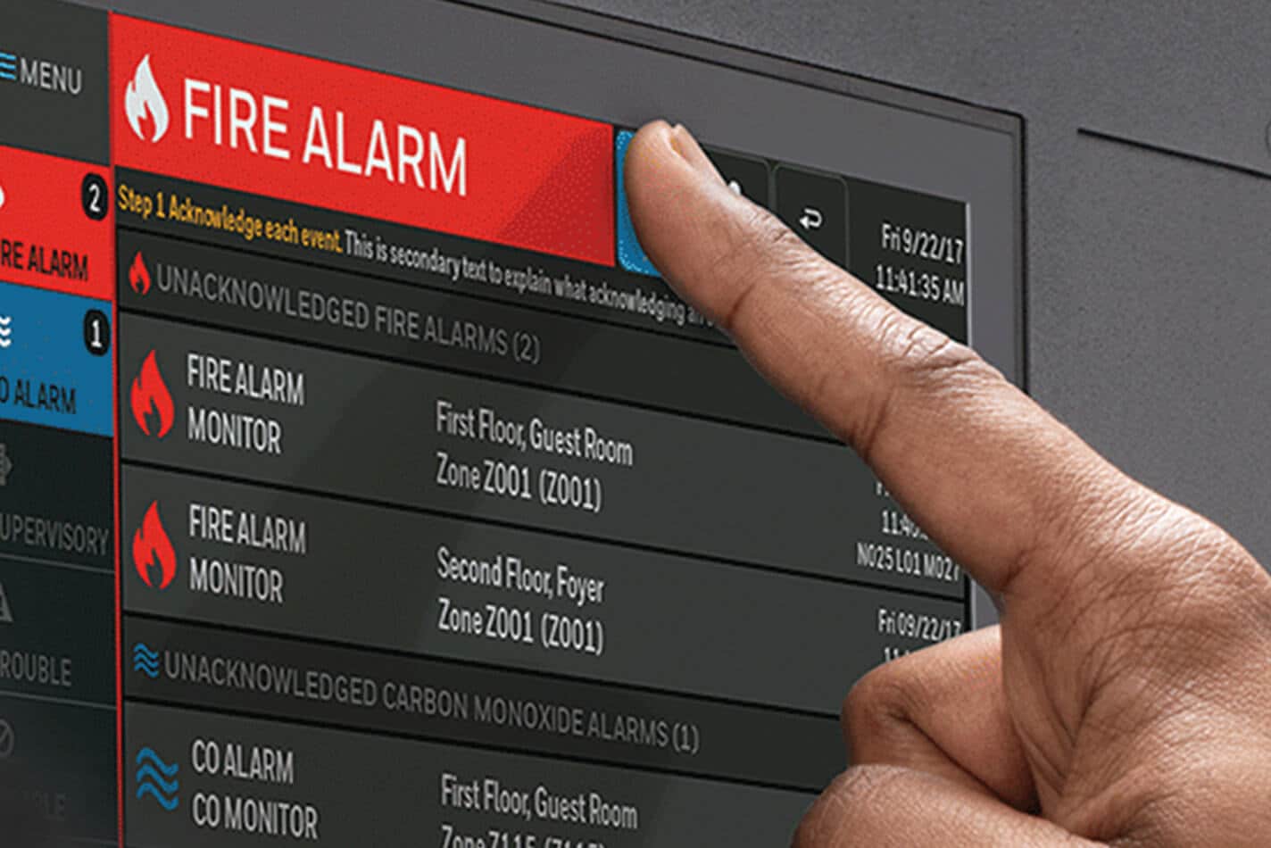 Used in millions of buildings, our scalable fire alarm monitoring systems let students and staff know there’s a fire, and issue emergency messages for a more orderly evacuation.